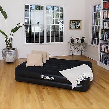 Когда нужно разместить гостей, но в доме нет лишнего спального места, вас выручит надувной матрас. Прочные перегородки внутри обеспечивают необходимую упругость. Встроенный насос упрощает процесс установки. С велюрового покрытия, приятного на ощупь, не скатывается постельное бельё. Для правильного хранения убирайте сдутый матрас в специальную сумку, которая есть в комплекте. Изделие имеет сдержанный дизайн, классическая расцветка позволяет ему хорошо вписываться в любой интерьер. Данную модель можно назвать настоящей надувной кроватью, так как она не уступает в комфорте обычным пружинным матрасам.