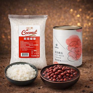 Кокосовое желе и консервированные красные бобы (адзуки) — ингредиенты для десертов, напитков и топпингов.