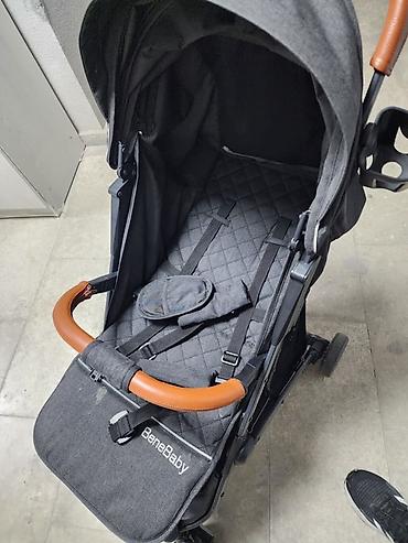 Прогулочная коляска BeneBaby - Тип: складная прогулочная коляска. - Цвет: тёмно‑серый/чёрный. - Рама: лёгкая, с центральной поперечной балкой для жёсткости. - Ручка: цельная, удобно управлять одно...