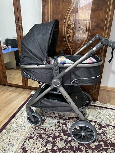 Прогулочная коляска LUXMOM (серый цвет). «Продаётся серая коляска. Цена — 5000 сом. По длине просторная, ребёнку комфортно, не тесная. Состояние хорошее. Велосипед, который рядом, отдаём бесплатно...