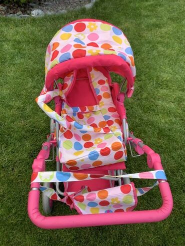 РозовыйПродаю Коляску для кукол с ярким дизайном в горошек. Состояние идеальное.Подойдет до 9 лет .Рама коляски выполнена из металла, окрашена в розовый цвет. Коляска оснащена капюшоном, который можно поднять и опустить, а также корзиной для хранения. В комплекте идёт сумочка, которую можно повесить на ручку коляски. Подходит для игр как дома, так и на улице.