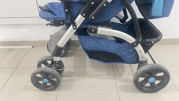 Коляска детская б/у, фирма prego, возможно выставить 2 положения, предназначены для детей возрастом от шести месяцев, умеющих самостоятельно сидеть. Складывается в трость, цвет серый и оранжевый. П...