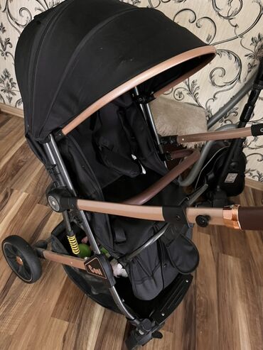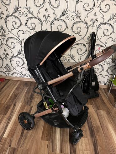 Детская коляска 2 в 1 (люлька + прогулочный блок), цвет теплый коричневый с черной рамой. Основные особенности: - Универсальная система: быстрая смена люльки на прогулочный блок на одном шасси. - ...
