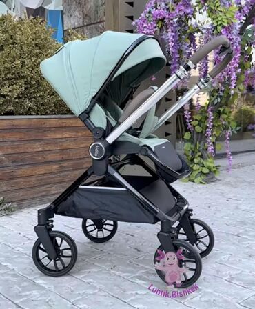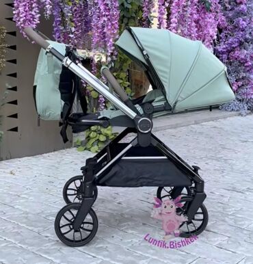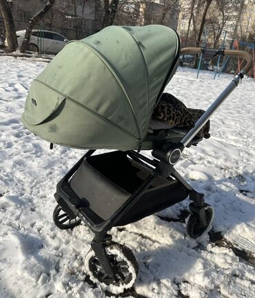 Универсальная детская коляска 2-в-1 (люлька + прогулочный блок), цвет хаки/оливковый. Основные особенности: - Шасси из легкого металла с лаконичным дизайном, центральный замок фиксации блока. - Бо...