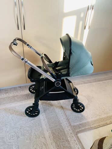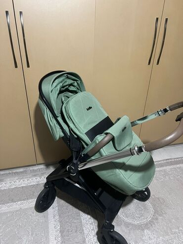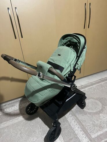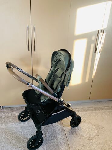 Универсальная детская коляска 2-в-1 (люлька + прогулочный блок), цвет хаки/оливковый. Основные особенности: - Шасси из легкого металла с лаконичным дизайном, центральный замок фиксации блока. - Бо...