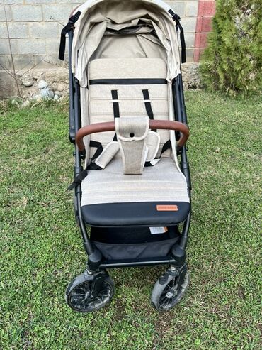 Б/уУниверсальная коляска ining baby бежевого цвета с черной рамой. Она оснащена регулируемым капюшоном, пятиточечными ремнями безопасности и корзиной для покупок под сиденьем. Ручка для толкания и бампер покрыты искусственной кожей коричневого цвета. Коляска подходит для комфортных прогулок как по городу, так и на природе.