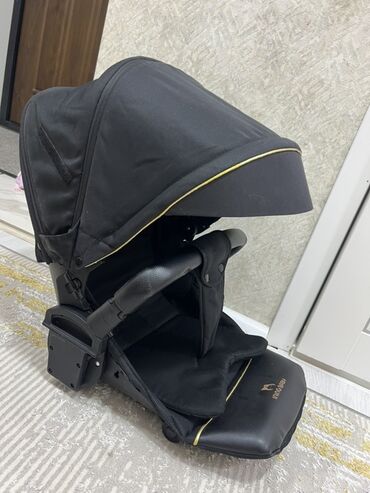 Универсальная детская коляска 2-в-1 в черном цвете: люлька + прогулочный блок. Основные особенности: - Модульная система: быстрая смена люльки на прогулочный блок на одной раме. - Алюминиевая рама...
