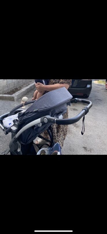 Коляска-трансформер (люлька/автолюлька) с шасси бу - Формат 2-в-1: прогулочный блок совмещён с автолюлькой-переноской. - Цвет текстиля: тёмно-зелёный; рама чёрная с серебристо‑алюминиевыми элемен...