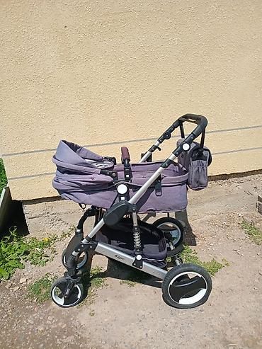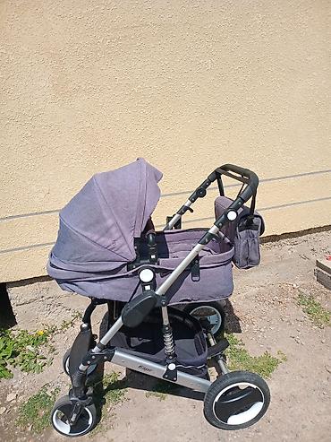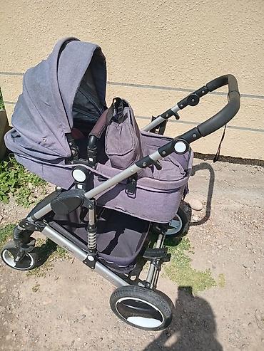 Коляска универсальная (люлька/прогулочный блок) в серо-фиолетовом цвете.