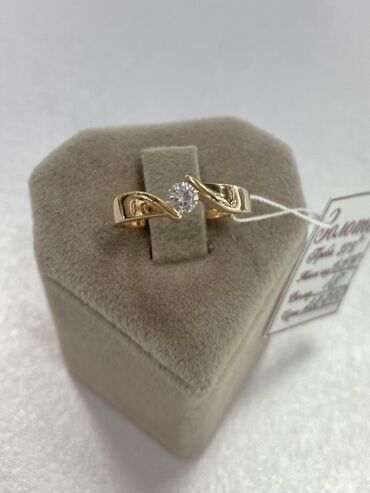 Золотое кольцо с одним камушком. Изящный дизайн с плавной линией, подчеркивающей блеск камня. Универсальный аксессуар для повседневной носки и особых случаев.