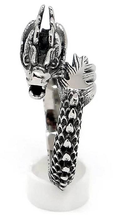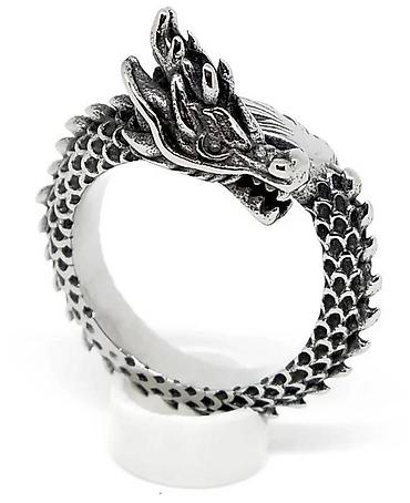 Эффектное украшение в виде мифического дракона — символа силы, власти и удачи. Детально проработанная голова и текстурированные чешуйки создают ощущение живого мифа на вашем пальце.