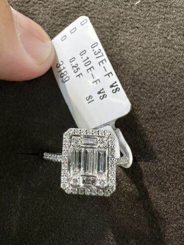 Элегантное кольцо с центральной группой бриллиантов огранки багет и круглыми бриллиантами по периметру и на шинке. Центральная часть украшена крупными багетными бриллиантами, расположенными вертикально, и четырьмя небольшими багетными бриллиантами по углам. Кольцо дополнено мелкими круглыми бриллиантами, которые создают ореол вокруг центральной части и украшают верхнюю часть шинки. Идеально подходит для особых случаев или в качестве изысканного подарка.Характеристики: