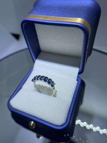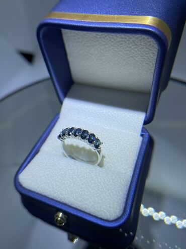 - Вставки: 7 насыщенно‑синих камней, выстроенных в один ряд по верхней части шинку, с аккуратной посадкой и равномерным градуированием.
