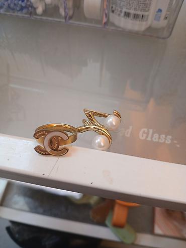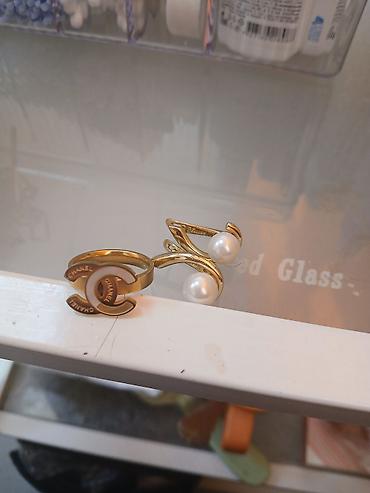 1) Открытое кольцо с логотипом СС. Широкая шинка, спереди – крупный элемент в форме двойной «С». На внешней стороне нанесены круговые надписи “CHANEL”. Декор в матово‑глянцевом сочетании, гладкая внутренняя поверхность для комфортной посадки.