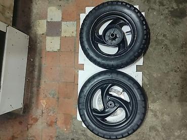 Задный сатылды ... колес для скутера/мопеда 13" Состав: - Переднее и заднее колесо в сборе на литых дисках. - Резина дорожного типа: 130/60-13 (маркировка на боковине). - Диски под бескамерные шин...