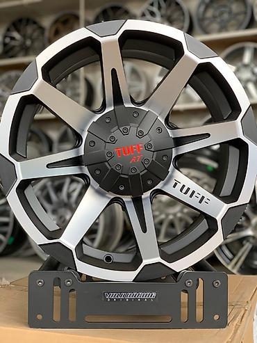 Литые диски Tuff A.T. с оригинальным дизайном. Цвет – матовый черный с серебристыми акцентами на спицах. Центральная заглушка черная с красной надписью. Подходят для установки на внедорожники и пикапы, обеспечивая стильный внешний вид и надежность на дороге.