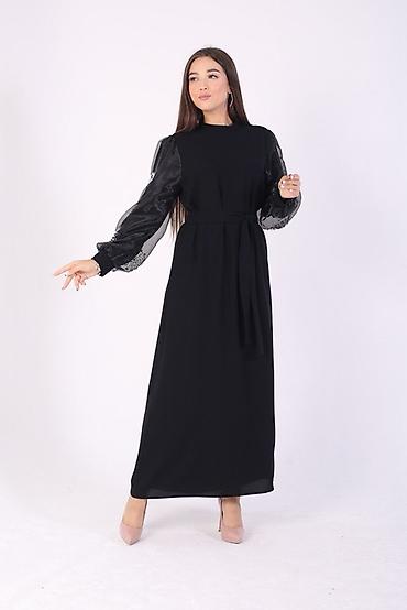Вечерняя абая из чёрного бархата с декоративной отделкой. Особенности: - Длина макси, свободный прямой крой. - Плотный бархат глубокого чёрного цвета, мягкий благородный блеск. - Передняя планка у...