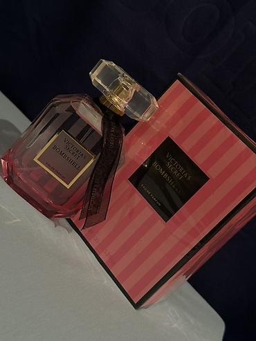 - Victoria’s Secret Bombshell — многогранный розовый флакон с прозрачной крышкой.