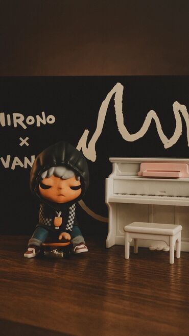 Коллекционный набор фигурок HIRONO x VANS - Авторский виниловый арт-бот HIRONO в худи с шахматным узором на рукавах, кеды в стиле Vans, скейт под ногами. - Детализированная мини-фигура: проработа...