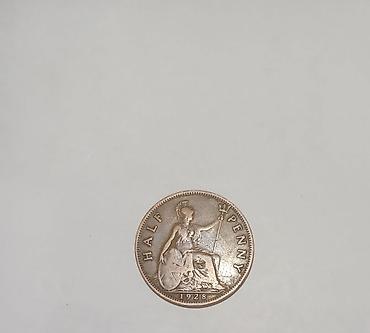 - Реверс: Британия с трезубцем и щитом, надпись HALF PENNY, дата 1928.