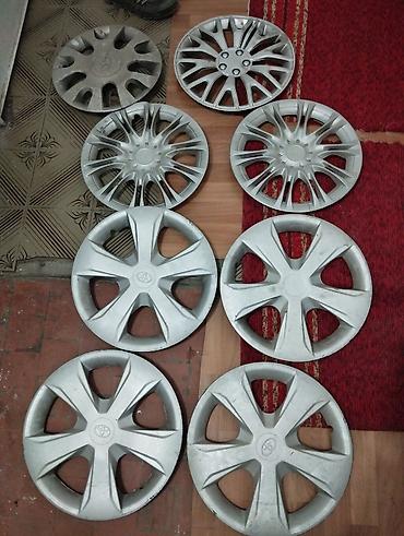 Колпаки на колесные диски R15 — тойтота - 1 шт. 500 сом, Ниссан R14 - 3 шт. по 250 сом каждая. Подойдут к большинству моделей Toyota и Nissan с размером диска R15 при условии совпадения типа крепле...