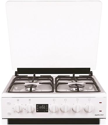 Apetito 04‑E — функциональная плита с газовой поверхностью и электродуховкой с конвекцией и грилем, подходящая для повседневной готовки и запекания, с акцентом на безопасность и удобство.- Гарантия: 3 года (полное сервисное обслуживание)