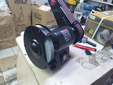 - Назначение: заточка, обдирка и шлифование металла и дерева. Сочетает точильный круг и ленточную шлифмашину в одном корпусе.