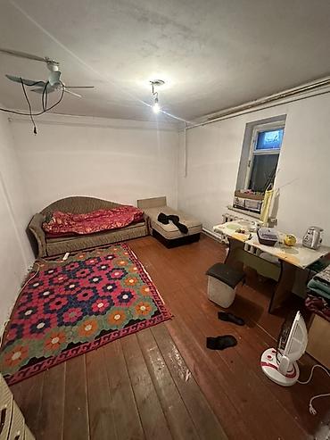 - Мебель/оснащение на фото: односпальная кровать/основание, диван, стол, напольный обогреватель, ковёр, тумба/табурет