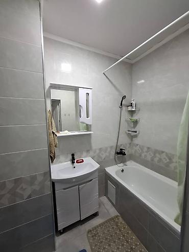 - Тумба с раковиной, зеркало-полка, точечное освещение.