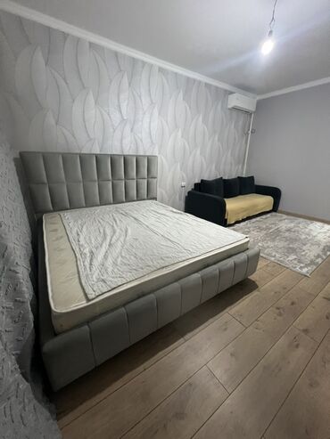 - Просторная жилая зона с большой двуспальной кроватью на мягком каркасe и высоким стеганым изголовьем.