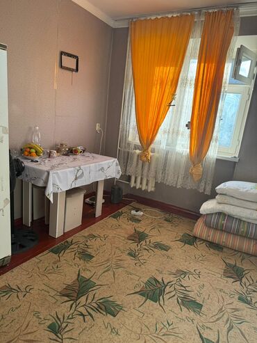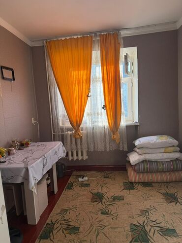 - Площадь одной комнаты со светлым окном и радиатором отопления. На окне – тюль и плотные шторы, открывающаяся форточка.