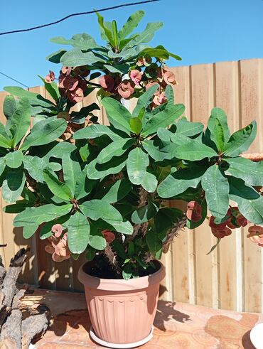 3) Молочай Миля (Euphorbia milii, «терновый венец») — цветущий куст