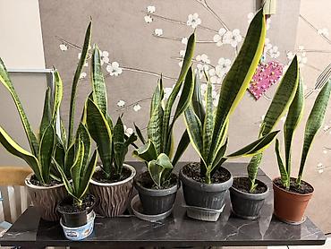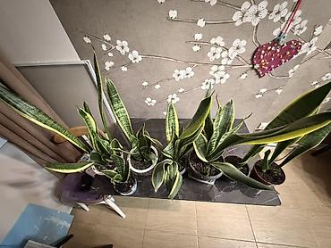 - Сансевиерия (Sansevieria, «тещин язык», «щучий хвост») — несколько экземпляров разной высоты