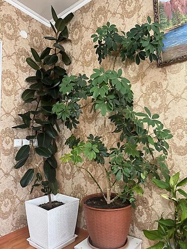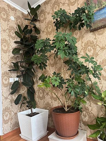 Комнатные крупномеры в горшках: 1) Фикус эластика (каучуконосный) -