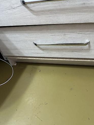 - Фурнитура: длинные хромированные ручки на каждом ящике.
