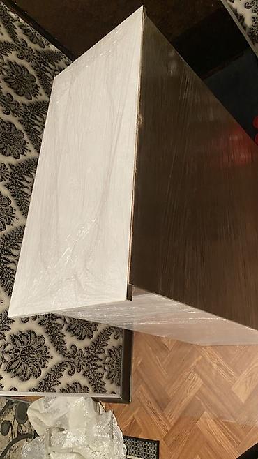 - Особенности: прямоугольная столешница с небольшим выносом по периметру; аккуратный цоколь; изделие обтянуто защитной плёнкой.