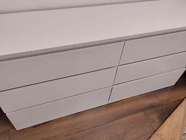 Белый современный комод с 6 выдвижными ящиками.