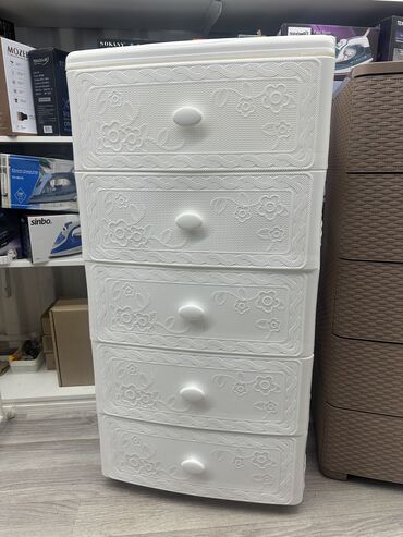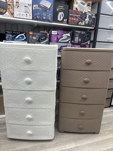 Комод с 4 выдвижными ящиками - Современный дизайн: прямые фасады с длинными ручками золотистого цвета. - Варианты оформления фасадов: белый матовый с деревянными вставками; матовый сине‑серый; гля...