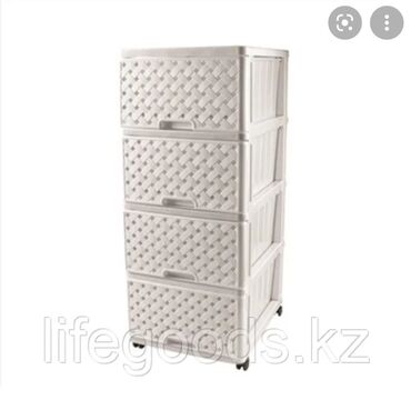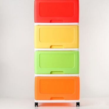 Пластиковый комод с пятью выдвижными ящиками белого цвета и салатовым каркасом, идеально подходящий для организации пространства в детской комнате, ванной, кладовой или на балконе. Верхняя поверхн...
