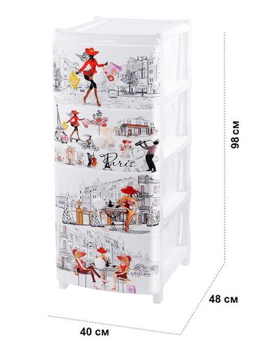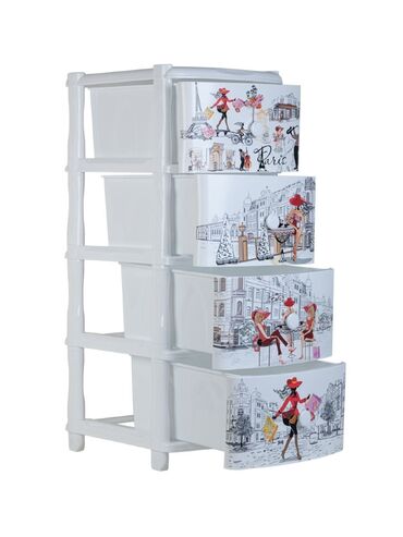 Платная доставкаКомод с рисунком №4 Париж 4-х секционный белый из пластика Эльфпласт 98 см