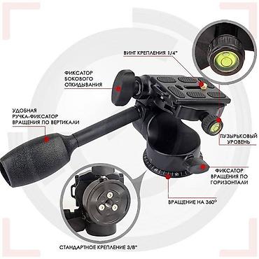 Штатив-трипод для смартфона/камеры - Легкий алюминиевый штатив с телескопическими секциями ног и защёлками-флипами. - Поворотно-наклонная голова с ручкой для плавного панорамирования и фиксацией у...