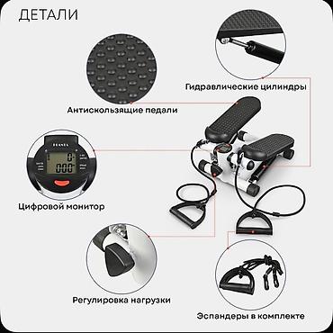 Компактный степпер для домашних тренировок, выполненный в белом цвете с черными элементами. Оснащен двумя нескользящими педалями для устойчивости во время занятий. Гидравлические цилиндры обеспечивают плавное движение и регулировку нагрузки, что позволяет адаптировать интенсивность тренировки под индивидуальные потребности. Встроенный цифровой монитор отображает важные параметры тренировки, помогая отслеживать прогресс. В комплекте идут эспандеры для дополнительных упражнений на верхнюю часть тела. Идеально подходит для кардиотренировок и укрепления мышц ног и ягодиц в условиях ограниченного пространства.