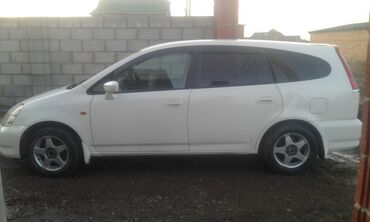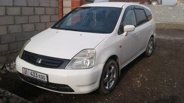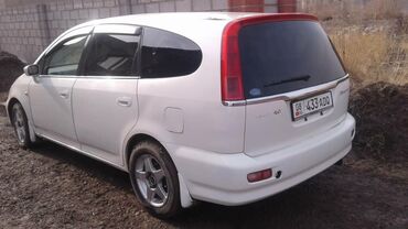 Honda Stream, 7‑местный компактвэн, белый цвет. Двигатель 2.0 , передний привод. Кузов 5‑дверный, просторный салон с большим багажником, задняя дверь — вертикальная, удобная погрузка.