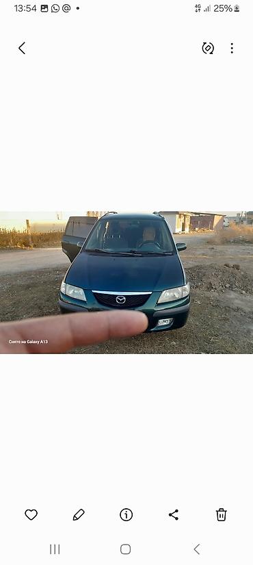 Mazda Premacy 380000т сом срочнопродается 2002г машина чистая вложение нет. матор каробка идеал не дымит масло не жрет каробка не пинает не дергает работает как часы. Андроид магинтол машина в полн...