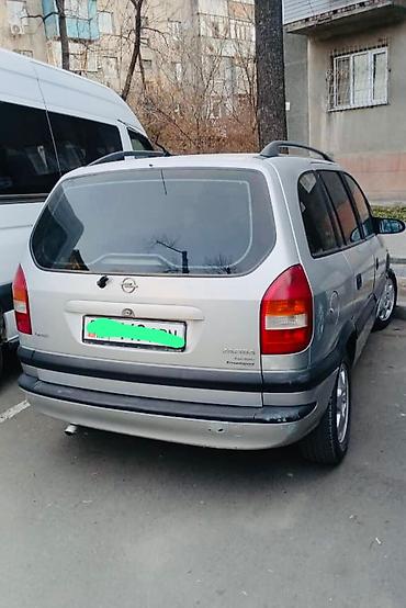 Opel Zafira A, серебристый минивэн 5‑дверный, киргизская регистрация (номер на фото). Просторный семейный автомобиль с возможностью трансформации салона и большим багажным отсеком. Особенности и о...