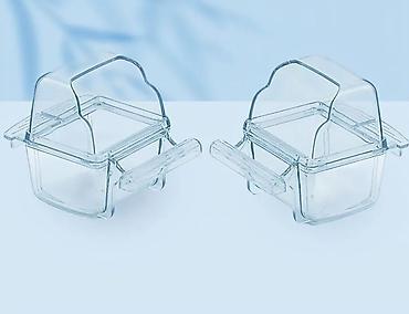 Материал: прозрачный пластик/акрил (кормушки), текстильная мелкоячеистая сетка (чехол).