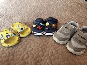 Детская обувь — комплект из трех пар: 1) Кроссовки/полуботинки черные - Материал верха: искусственная кожа с фактурой. - Цвет: черный; подошва серая. - Шнуровка-резинка с фиксатором, дополнительны...