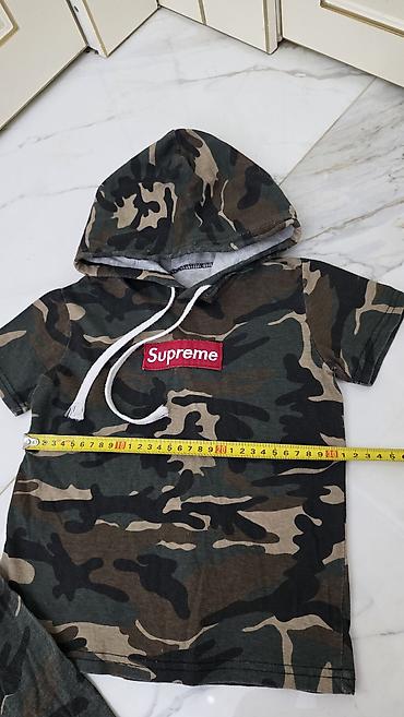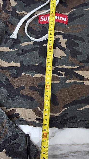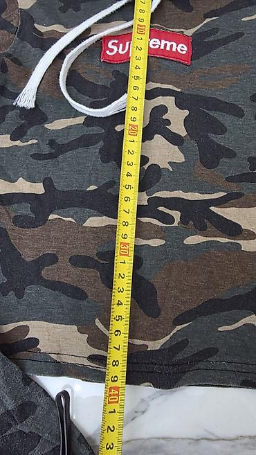 - Принт/нашивка: красная нашивка “Supreme” на груди