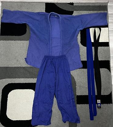 Кимоно для дзюдо (синее), детско-подростковое. Комплектация: - куртка (дзюдоги) из плотной ткани с фактурным переплетением; - брюки на завязках; - пояс в цвет кимоно. Размер: 170 см Особенности: -...