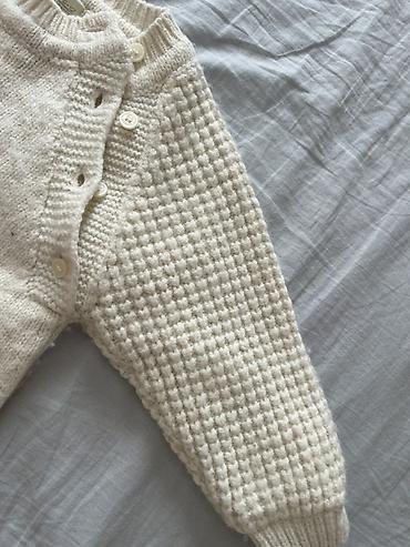 Вязаный детский комплект от рождения до 3-4х месяцев можно носить 2-в-1 без этикетки но новая Подходит для выписки теплая. Классное качество Состав набора: - комбинезон на пуговицах из плотной...